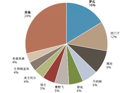 图片5:2011年全球诊断试剂市场集中度高,CR10=71%