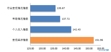虽然各项分指数均比较高,但受访者对宏观经济最为看好