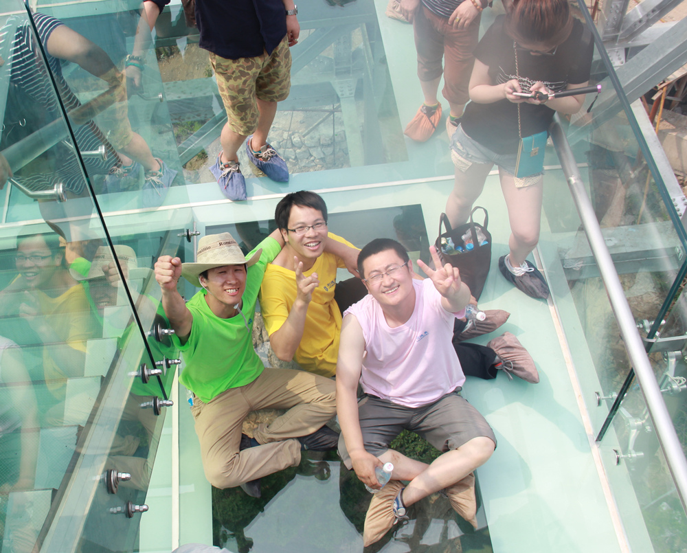 玻璃栈道!哈哈!要勇于站起来!