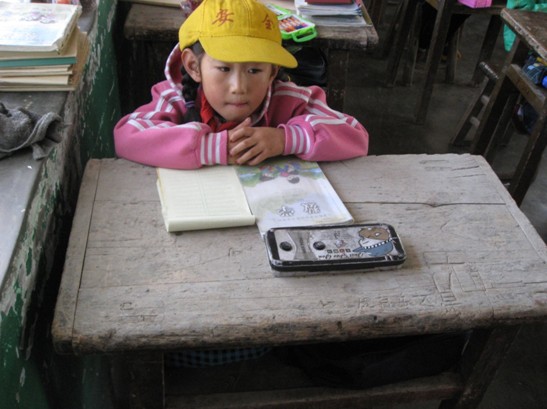 马峡中心小学原有的课桌椅