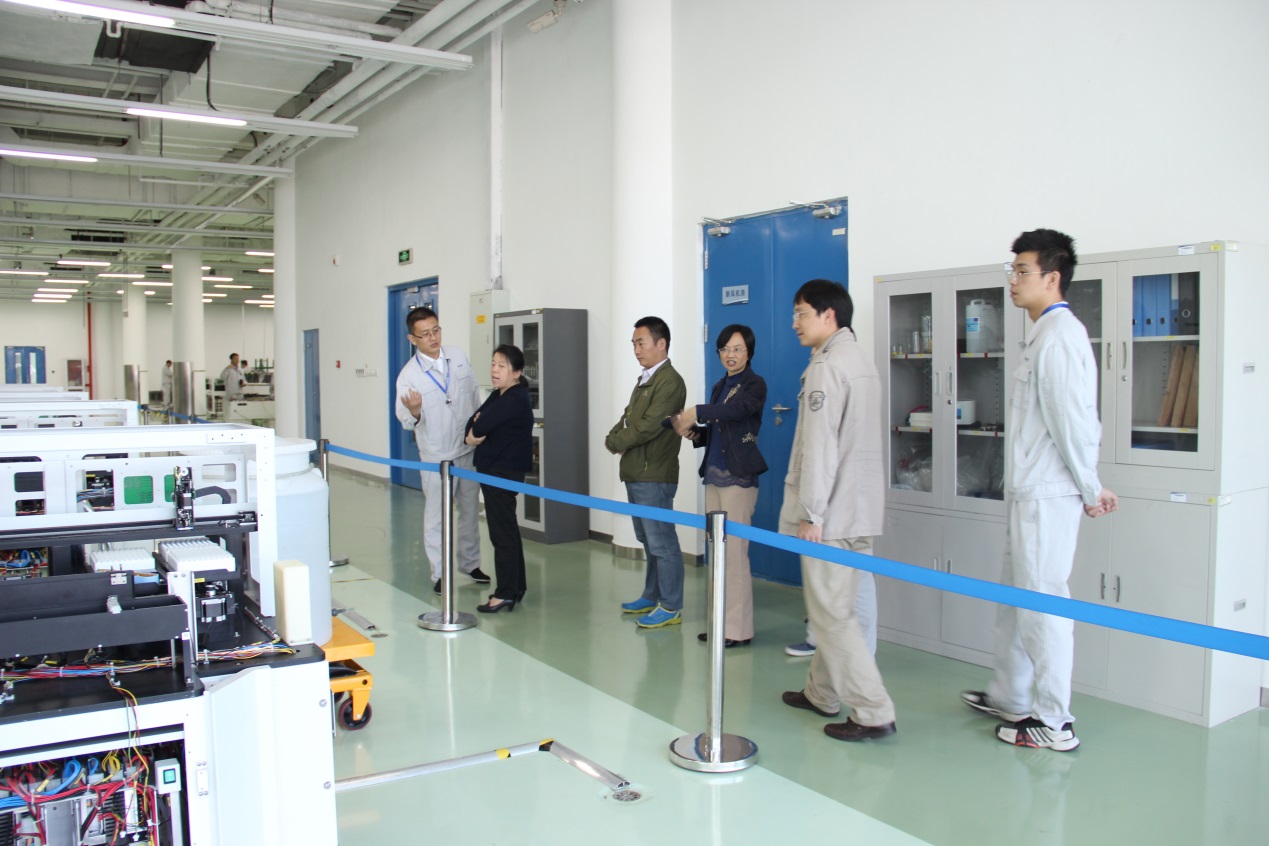 来访领导重点参观了公司研发中心仪器/试剂/原料实验室和生产车间等,认真了解公司研发生产检验过程,并对公司仓储采购等运行情况做了详细的询问,对公司在产品质量控制方面投入的努力表示肯定,并希望在新法规的制定和实行过程中积极参与,起到重点企业的代表作用。